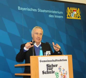Am 23.04.2012 fand die Pressekonferenz der Gemeinschaftsaktion Sicher zur Schule - Sicher nach Hause aus Anlass der Schuleinschreibung für das Schuljahr 2012/2013 zum Thema: Schulwegsicherheit geht alle an! Die Schwächsten schützen! im Bayerischen Staatsministerium des Innern in München statt.