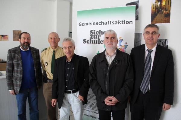 von links: Dominik Hammer von der TÜV Süd AG, EPHK Peter Kaiser vom Sachgebiet Verkehr des Polizeipräsidiums Schwaben Süd/West, Wolfgang Prestele, Geschäftsführer der Gemeinschaftsaktion, Peter Gerke von Schweighart Reisen Wiggensbach, EPHK Hubert Schröder vom Bayerischen Staatsministerium des Innern, für Bau und Verkehr Foto: Gemeinschaftsaktion