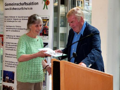 Unter dem Applaus der Anwesenden übergab Herr Süß die Ehrenurkunden der Gemeinschaftsaktion für zehn bis 28 Jahre ehrenamtlichen Dienstes als Schulweghelferin bzw. Schulweghelfer. Diese Ehrenurkunden wurden durch den Geschäftsführer der Gemeinschaftsaktion Wolfgang Prestele sowie den Präsidenten der Landesverkehrswacht Dr. Florian Herrmann bzw. ab 15 Jahre durch den Bayerischen Staatsminister des Innern, für Bau und Verkehr unterzeichnet. Ministerpräsident Horst Seehofer hat als Schirmherr der Gemeinschaftsaktion die Urkunden für 28 Jahre Schulwegdienst signiert.